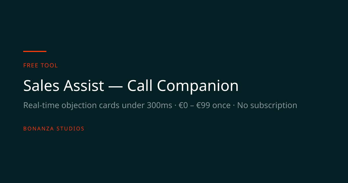 Free desktop app for real-time objection handling during sales calls. Response cards under 300ms. No subscription, no server, no cloud.